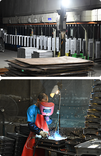 يضم المصنع ورشة لثقب الحديد، وورشة لصب الألمنيوم، وورشة للطلاء، وورشة لتصنيع المحركات، وورشة للتشغيل الآلي الدقيق، وورشة للتجميع. ويتم الإشراف على عملية ضمان الجودة برمتها — بدءاً من فحص المواد الخام والمكونات، ووصولاً إلى فحوصات السلامة التي تُجرى قبل مغادرة المنتجات للمصنع — بواسطة فنيين متخصصين لضمان تحقيق أعلى مستويات الجودة.